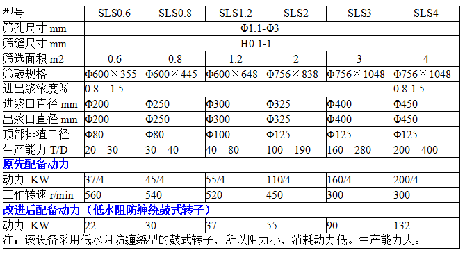 眾所周知,再生紙漿中的雜質分輕雜質、重雜質兩部分。傳統(tǒng)型壓力篩由上部進料,底部排渣,輕重雜質都通過整個篩漿區(qū)。由于回收的廢紙箱漿料中會含有很多鐵釘、錠箱釘、砂石等硬質雜質,當這部分雜質通過篩選區(qū)時勢必會給篩鼓及旋翼造成嚴重的磨損與破壞。嚴重的會擊破篩鼓。SLS型升流壓力篩采取底部進漿、底部排重渣、頂部排輕渣的升流式結構設計,有效地解決了上述問題。重雜質一進入機體即被甩到底部沉渣槽,由重渣排渣管間歇或者連續(xù)排出機外,輕雜質在壓力作用下升到頂部排渣口排出。這樣,一方面有效地縮短了雜質在篩區(qū)的停留時間,降低了雜質循環(huán)的可能性,提高了篩選效率;另一方面防止重雜質對轉子和篩鼓造成的損壞,延長設備的使用壽命。