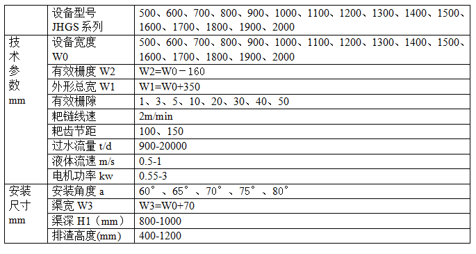 該設備可以根據用戶溝渠的寬度、深度進行定做,安裝于污水排放源頭。實現連續運轉;可以根據格柵前后液位差自動調整;并且有手動控制功能;以方便檢修。用戶可根據需要任意選用。