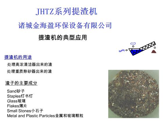 工作過(guò)程:渣水混合液中比重較大的渣粒在捕集穩(wěn)流板的作用下,下降沉積于蓄水箱(槽)底部,緩慢轉(zhuǎn)動(dòng)的輸送螺旋,不斷的將渣料沿傾斜的U型槽慢慢提升,隨著渣的向上提升,離開(kāi)液面實(shí)現(xiàn)渣和水的分離,繼續(xù)(濾水)推移一段距離后,充分脫水后的渣粒經(jīng)U型槽上的排渣口排除,最終實(shí)現(xiàn)渣水的分離,而與渣分離后的水則從溢流口排出。